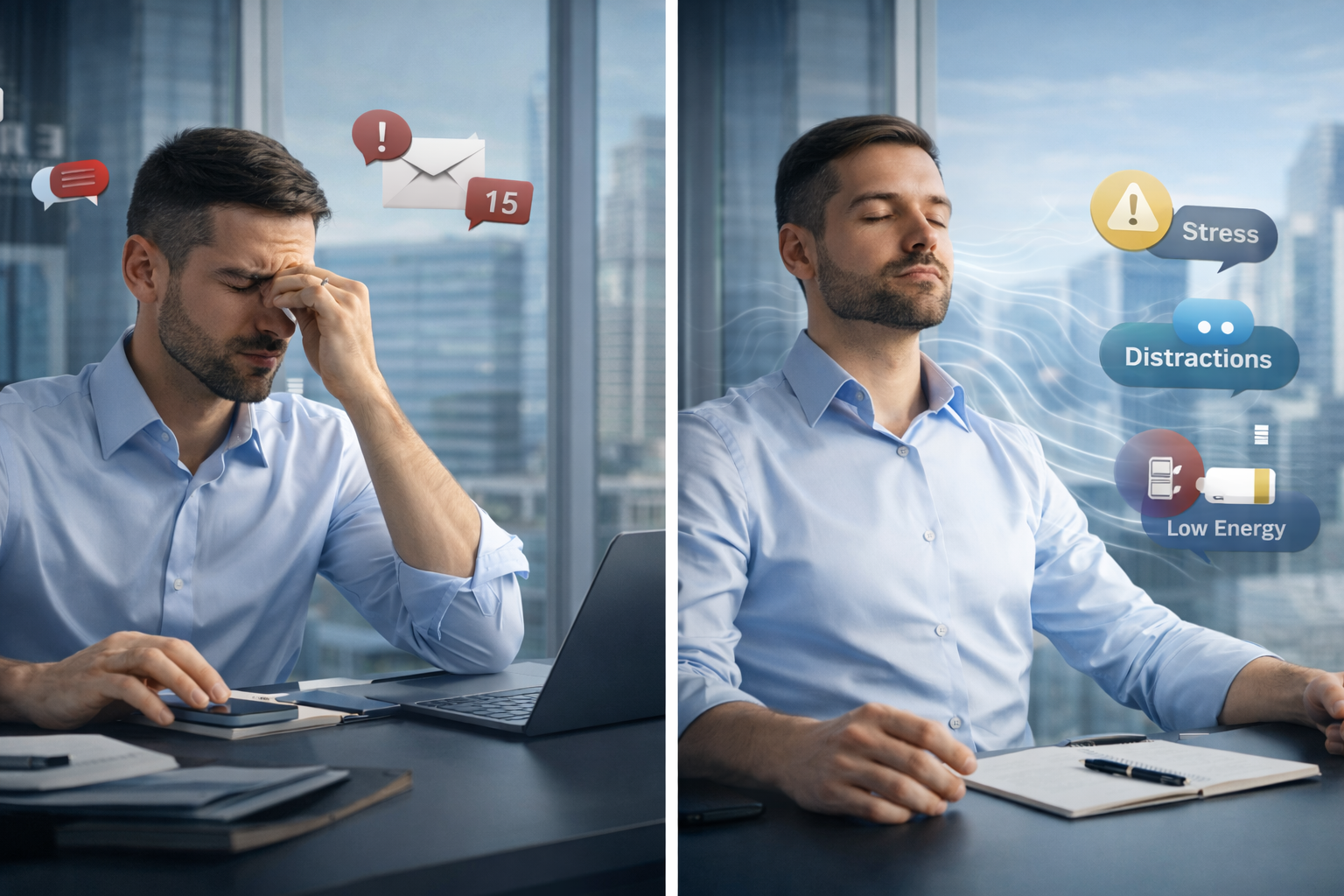 Discover specific breathing techniques to combat stress, distraction, and low energy, enhancing productivity.