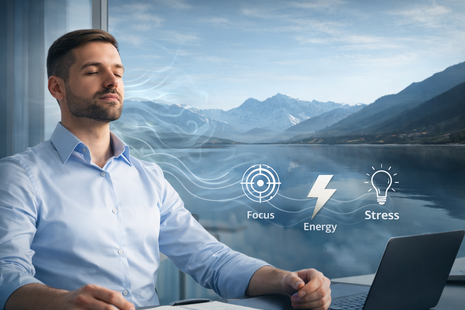 Learn how conscious breathing can regulate focus, energy, stress, and creativity throughout the workday.